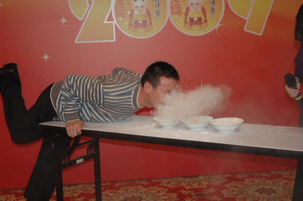 一等獎獲得者吹乒乓球